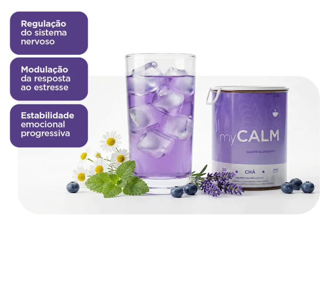 O myCALM é um Blend Neurocalmante desenvolvido para modular o estresse e reduzir a hiperatividade mental — sem sedação.